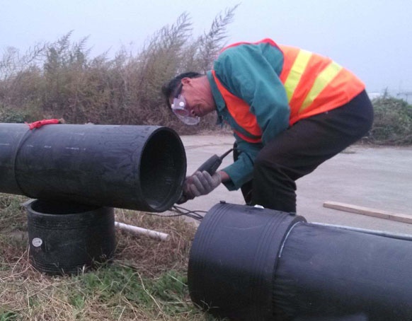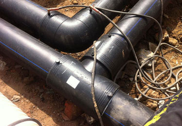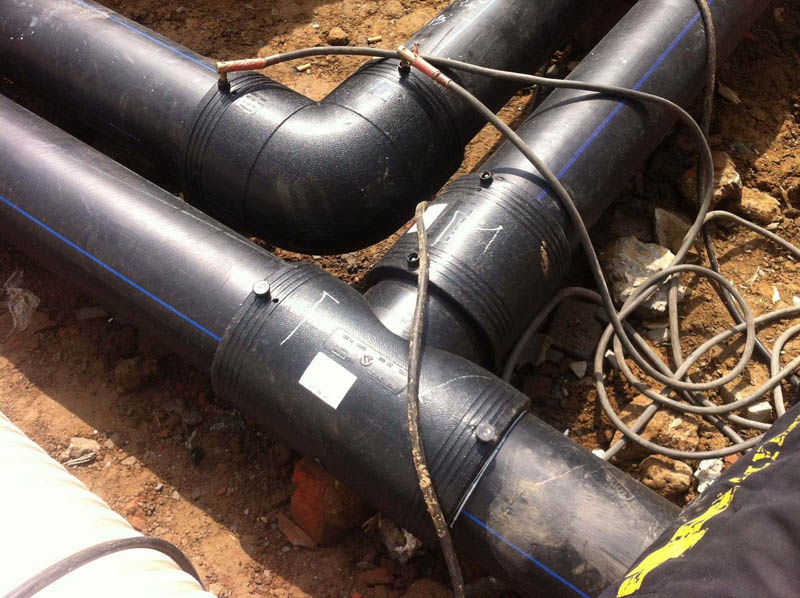 安裝工藝流程:備料—刮削氧化層—清潔焊接面—標(biāo)記承插深度—檢測管件線圈—轉(zhuǎn)配管件—檢查配合—固定連接處—管件編號—焊接—冷卻—局部回填—試壓驗(yàn)收—整體回填
